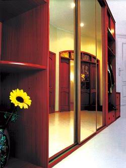 В производстве современной мебели используют два вида стекла и зеркал: обычное и безопасное. Простейший вариант безопасного стекла (зеркала) – «листовой» материал, наклеенный на синтетическую пленку. Как и любое стекло, оно бьется (правда, для этого требуется больше усилий, чем обычно), но, даже разбившись, не разлетается на мелкие осколки. Еще более надежный вариант – триплекс (многослойное стекло, в котором специальная пленка находится между слоями материала). Безопасность зеркала и стекла мебельщики стали использовать сравнительно недавно. Если не принимать во внимание «экзотику» типа стеклянного кресла, то можно с уверенностью сказать, что основная сфера их применения – модульно-секционная мебель. Скажем, те же шкафы-купе. В них, в отличие от традиционной мебели, часто встречаются большие стеклянные и зеркальные поверхности.