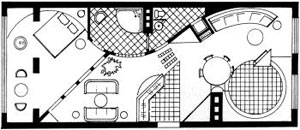 Правда, скорее всего, придется отказаться от центрального светильника, который бы "давил" на голову и в результате вновь бы украл отвоеванную с таким трудом высоту. (Студийное пространство вообще исключает центральное освещение. Освещение в каждой зоне там устраивается своё - в основном это местное освещение). Вместо него по периметру заниженной зоны можно расположить встроенные в потолок небольшие светильники, в том числе и регулируемые направленные светильники.